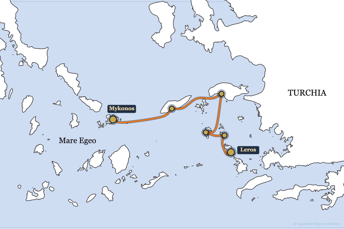 Questo anno riportiamo Sweet in Italia, partendo da Leros ai limiti della Turchia. Un viaggio di oltre 2000 miglia suddiviso in sette tappe. Sweet e il suo equipaggio partirà da Leros ai primi di luglio per dirigersi verso Mikonos, nelle Cicladi settentrionali.